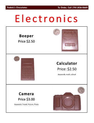 Electronics Beeper Price $2.50 Calculator Price: $2.50 Keywords: math, school Camera Price $3.00 Keywords: Travel, Picture, Photo