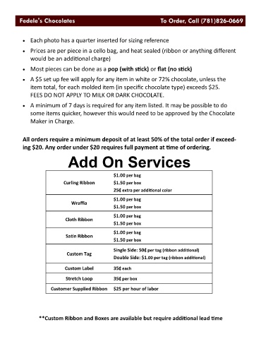 • A $5 set up fee will apply for any item in white or 72% chocolate, unless the