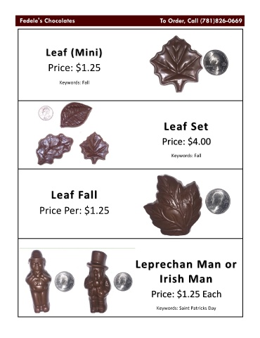 Leaf (Mini) Price: $1.25 Keywords: Fall Leaf Set Price: $4.00 Keywords: Fall Leaf Fall Price Per: $1.25 Leprechan Man or Irish Man Price: $1.25 Each Keywords: Saint Patricks Day