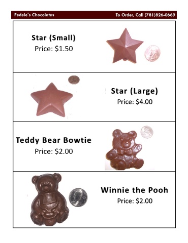 Star (Small) Price: $1.50 Star (Large) Price: $4.00 Teddy Bear Bowtie Price: $2.00 Winnie the Pooh Price: $2.00