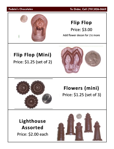 Flip Flop Price: $3.00 Add flower decon for 25₵ more Flip Flop (Mini) Price: $1.25 (set of 2) Flowers (mini) Price: $1.25 (set of 3) Lighthouse Assorted Price: $2.00 each