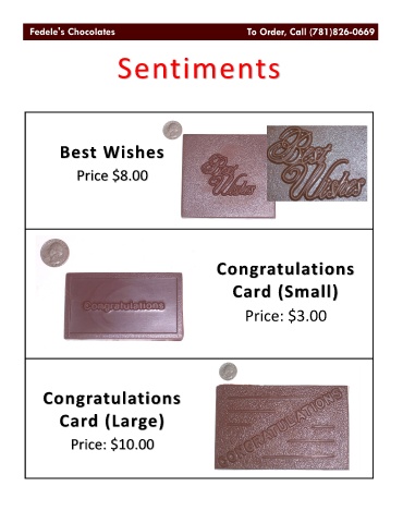 Sentiments Best Wishes Price $8.00 Congratulations Card (Small) Price: $3.00 Congratulations Card (Large) Price: $10.00