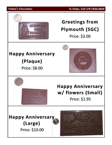 Greetings from Plymouth (SGC) Price: $3.00 Happy Anniversary (Plaque) Price: $8.00 Happy Anniversary w/ flowers (Small) Price: $1.95 Happy Anniversary (Large) Price: $10.00