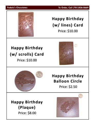 Happy Birthday (w/ lines) Card Price: $10.00 Happy Birthday (w/ scrolls) Card Price: $10.00 Happy Birthday Balloon Circle Price: $2.50 Happy Birthday (Plaque) Price: $8.00