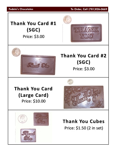 Thank You Card #1 (SGC) Price: $3.00 Thank You Card #2 (SGC) Price: $3.00 Thank You Card (Large Card) Price: $10.00 Thank You Cubes Price: $1.50 (2 in set)