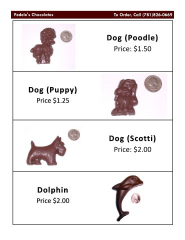Dog (Poodle) Price: $1.50 Dog (Puppy) Price $1.25 Dog (Scotti) Price: $2.00 Dolphin Price $2.00